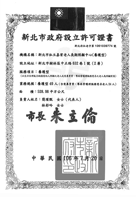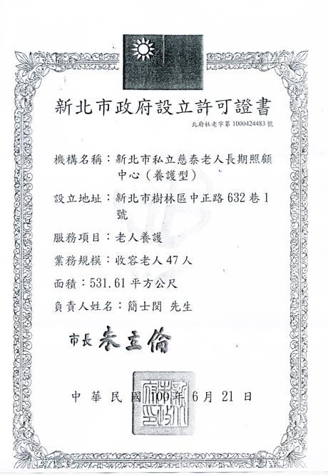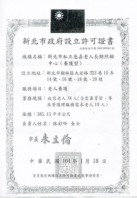 『台北縣私立慈嘉老人養護中心』